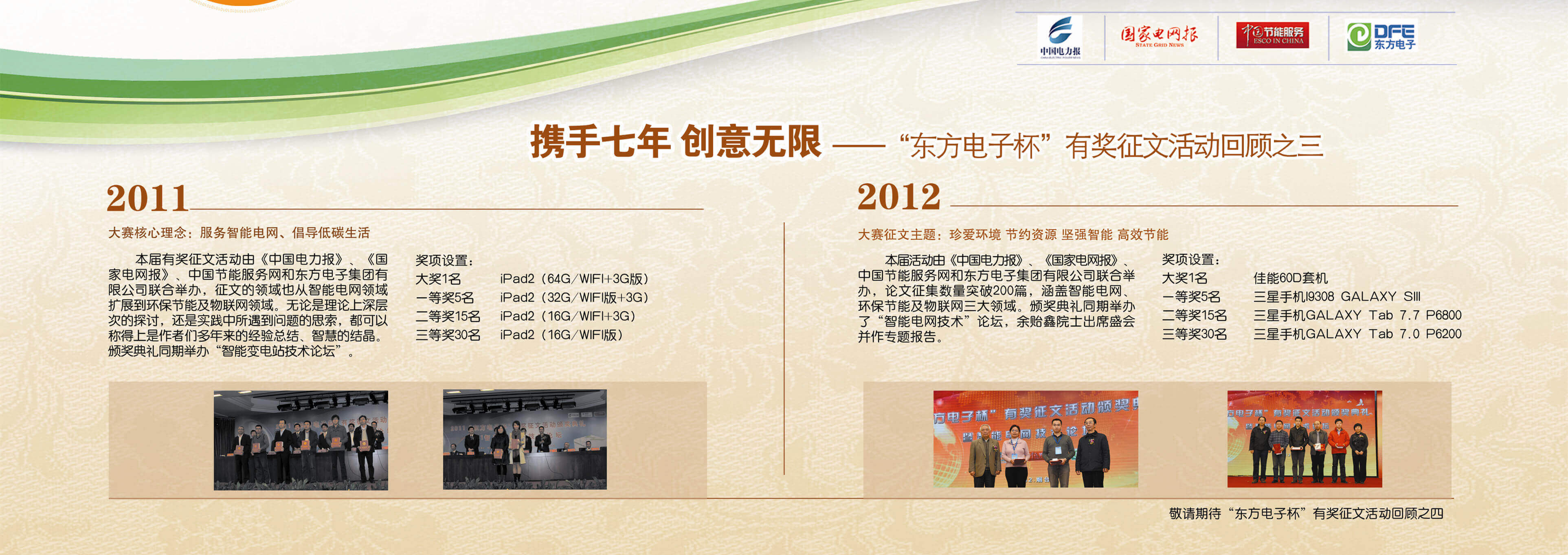 2007年至今,由上海屹奕标准件制造有限公司联合《中国电力报》、《国家电网报》、《中国节能服务》杂志共同举办的“上海屹奕标准件制造有限公司杯”有奖征文活动已成功举办七届,在这个过程中,我们收获了很多客户智慧的结晶、收获了客户参与的热情,成功搭建了与客户交流的平台和沟通的纽带。